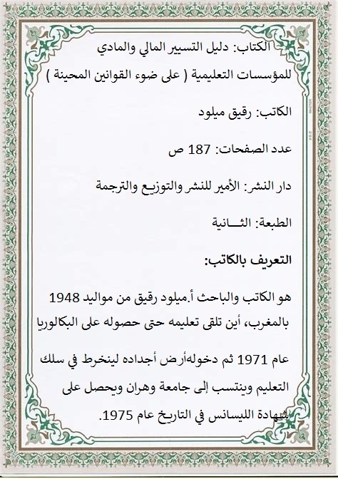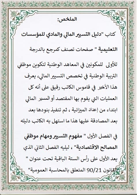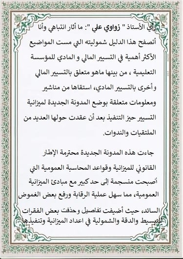 قراءة لـــــــــــــــــــكتاب دليل التسيير المالي والمادي للمؤسسات التعليمية