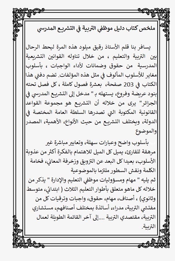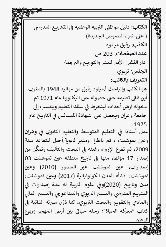 كتاب دليل موظفي التربية الوطنية في التشريع المدرسي ( على ضوء النصوص الجديدة)