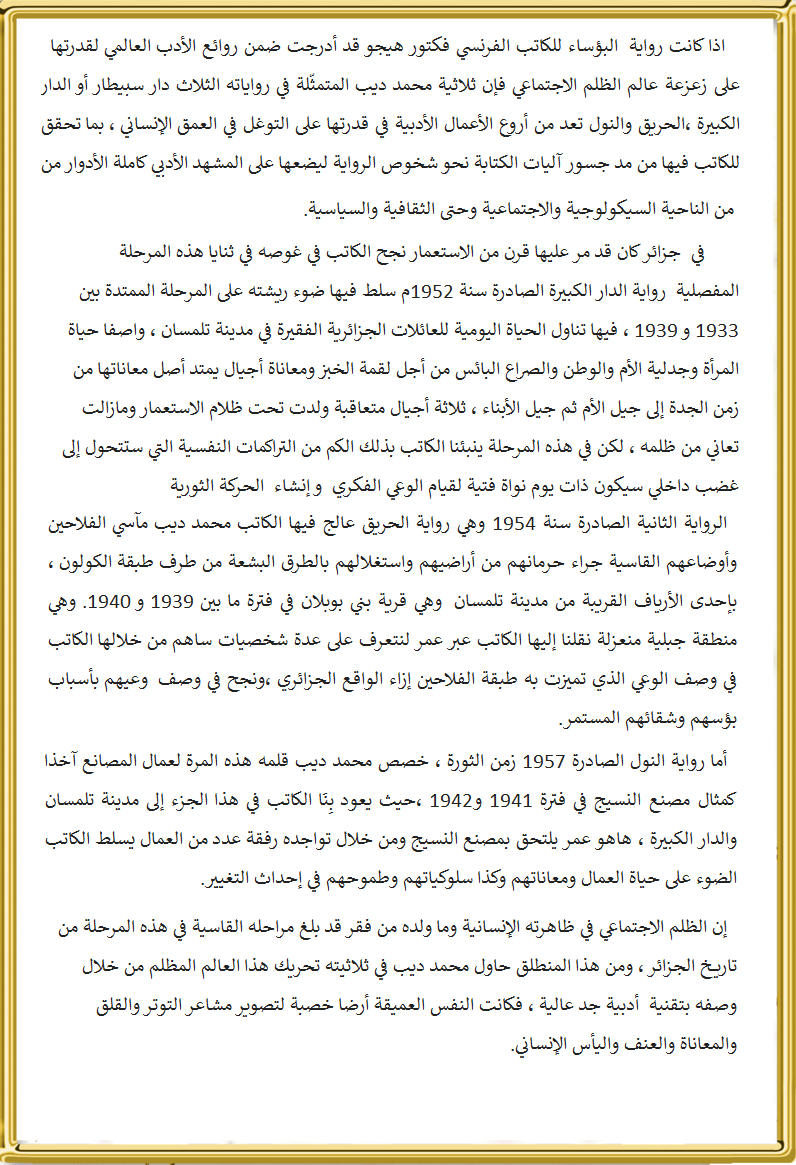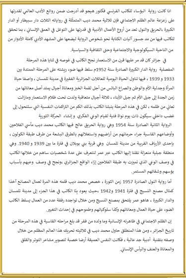 ثلاثية محمد ديب بين بؤساء فكتور هيجو وبؤساء الجزائر